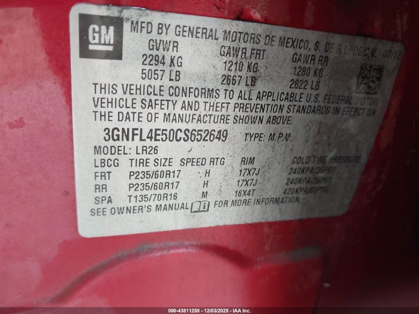 2012 CHEVROLET CAPTIVA 2012 року Бензин, 3.0, Полный привод, vin - 3GNFL4E50CS652649 из США