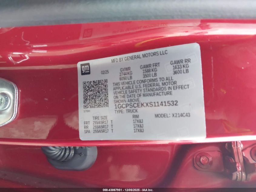 2025 CHEVROLET COLORADO 2025 року Бензин, 2.7, , vin - 1GCPSCEKXS1141532 из США