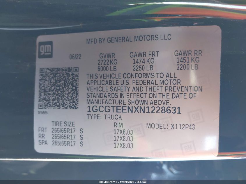 2022 CHEVROLET COLORADO 2022 року Бензин, 3.6, Полный привод, vin - 1GCGTEENXN1228631 из США