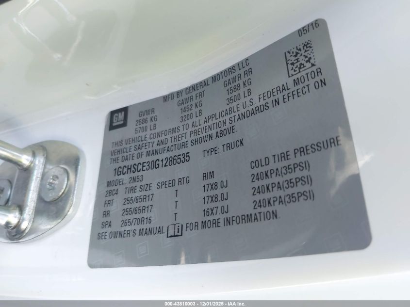 Цвет БелыйЦилиндры 6VIN 1GCHSCE30G1286535Состояние СтационарноПовреждения Передняя леваяДата аукциона 2025-12-10 AutoRIA