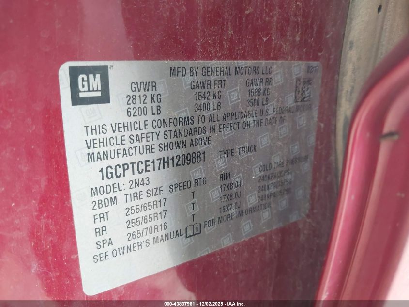Цвет КрасныйЦилиндры 4Привод Полный приводVIN 1GCPTCE17H1209881Состояние Заводится и едет (проверено)Повреждения Передняя или задняяДата аукциона 2025-12-10 AutoRIA