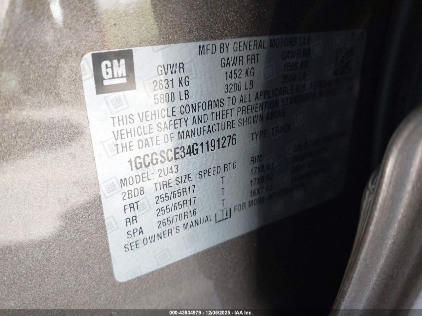 Цвет СерыйЦилиндры 6VIN 1GCGSCE34G1191276Состояние СтационарноПовреждения Передняя или задняя AutoRIA