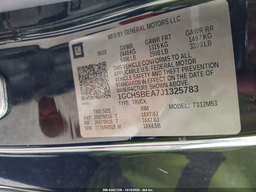 2018 CHEVROLET COLORADO 2018 року Бензин, 2.5, , vin - 1GCHSBEA7J1325783 из США