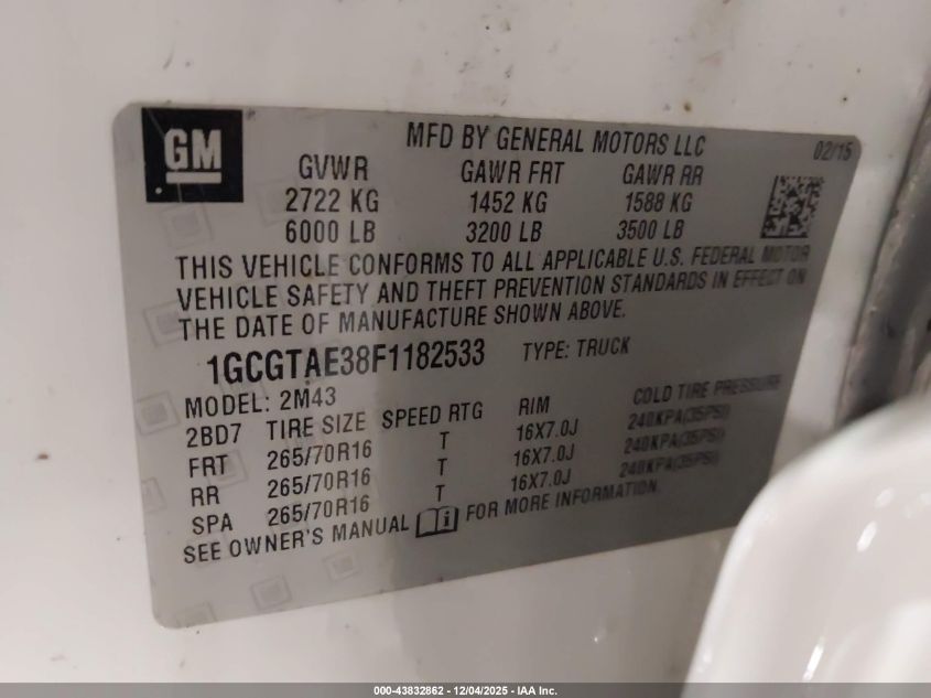 2015 CHEVROLET COLORADO 2015 року Бензин, 3.6, Полный привод, vin - 1GCGTAE38F1182533 из США