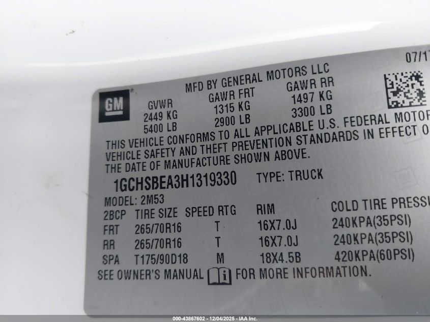 2017 CHEVROLET COLORADO