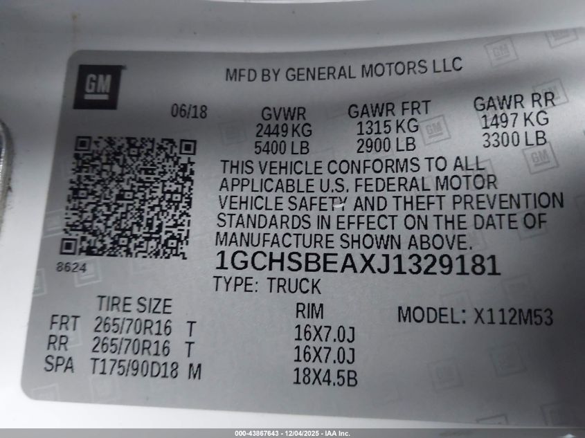 2018 CHEVROLET COLORADO 2018 року Бензин, 2.5, , vin - 1GCHSBEAXJ1329181 из США
