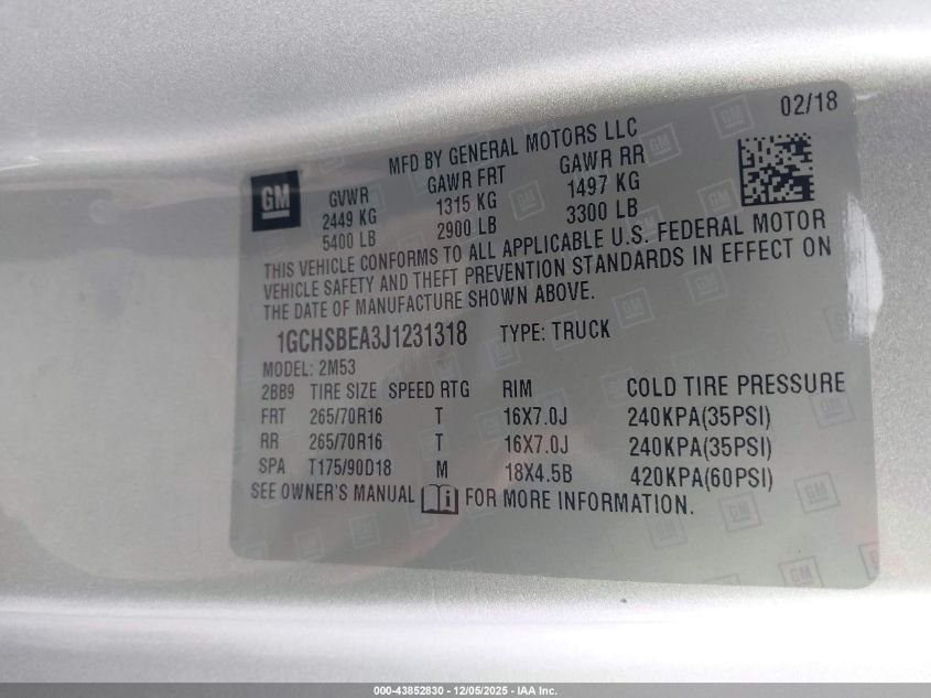 2018 CHEVROLET COLORADO 2018 року Бензин, 2.5, , vin - 1GCHSBEA3J1231318 из США