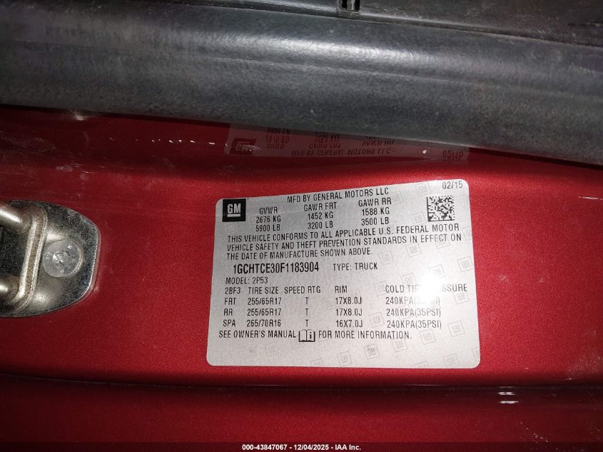 2015 CHEVROLET COLORADO 2015 року Бензин, 3.6, Полный привод, vin - 1GCHTCE30F1183904 из США