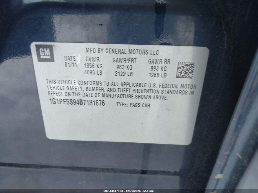 2011 CHEVROLET CRUZE 2011 року Бензин, 1.4, Передний привод, vin - 1G1PF5S94B7181676 из США