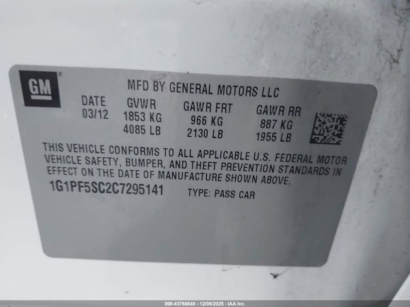 2012 CHEVROLET CRUZE 2012 року Бензин, 1.4, Передний привод, vin - 1G1PF5SC2C7295141 из США
