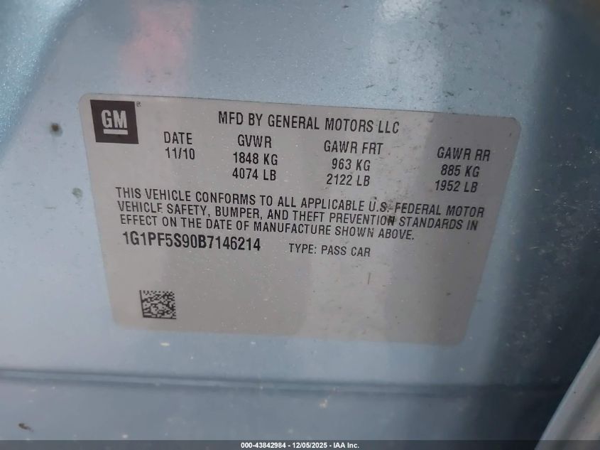2011 CHEVROLET CRUZE 2011 року Бензин, 1.4, Передний привод, vin - 1G1PF5S90B7146214 из США