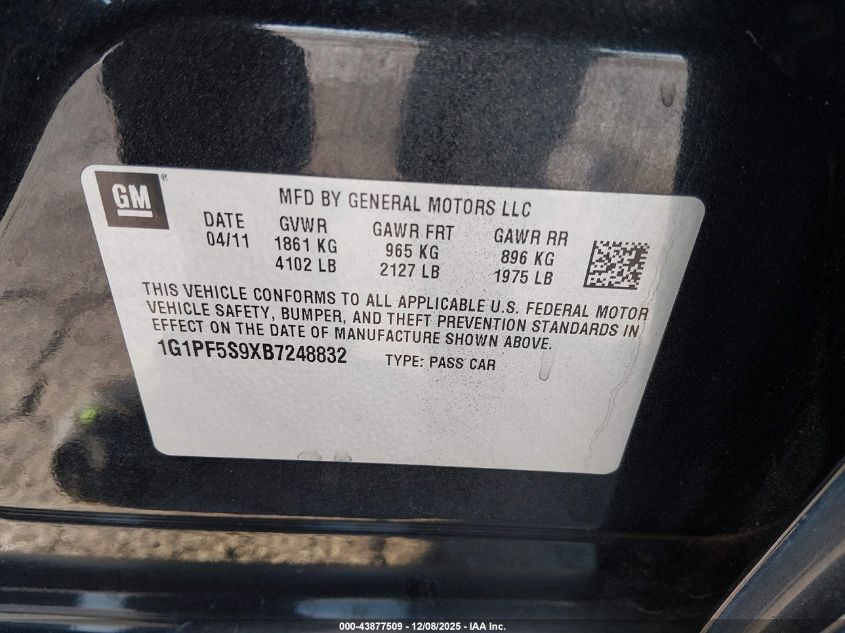 2011 CHEVROLET CRUZE 2011 року Бензин, 1.4, Передний привод, vin - 1G1PF5S9XB7248832 из США