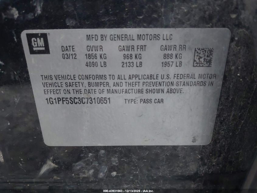 2012 CHEVROLET CRUZE 2012 року Бензин, 1.4, Передний привод, vin - 1G1PF5SC3C7310651 из США