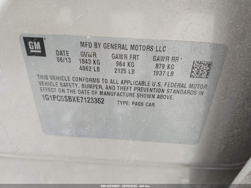 2014 CHEVROLET CRUZE 2014 року Бензин, 1.4, Передний привод, vin - 1G1PC5SBXE7123362 из США