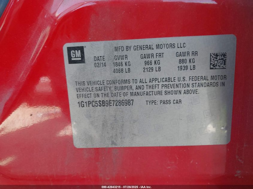 2014 CHEVROLET CRUZE 2014 року Бензин, 1.4, Передний привод, vin - 1G1PC5SB9E7286987 из США