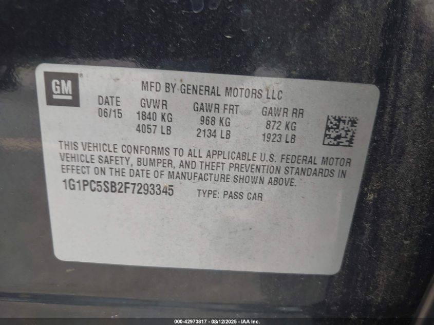 2015 CHEVROLET CRUZE 2015 року Бензин, 1.4, Передний привод, vin - 1G1PC5SB2F7293345 из США