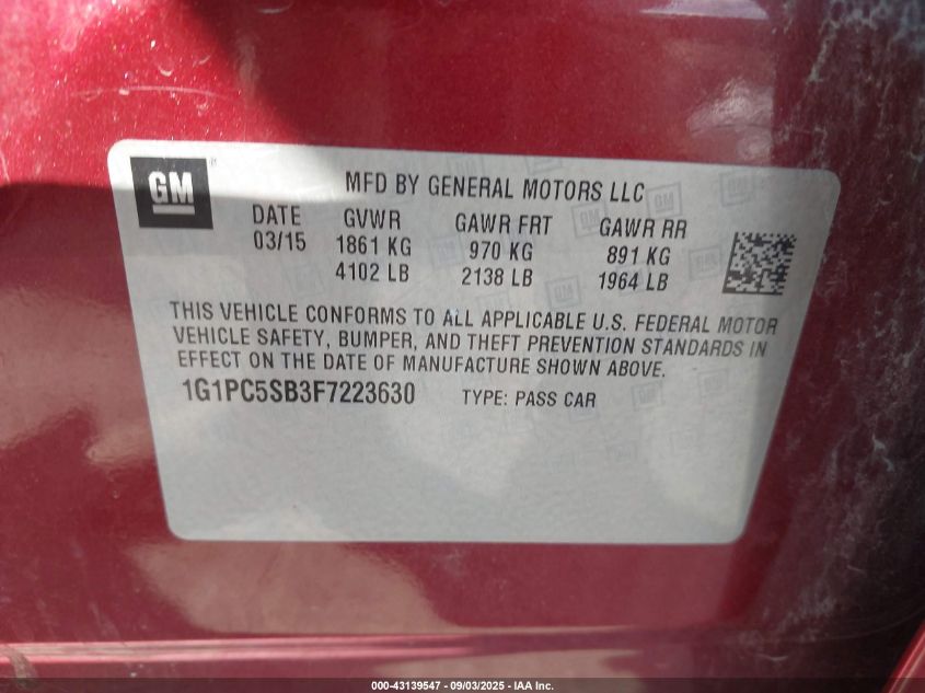 2015 CHEVROLET CRUZE 2015 року Бензин, 1.4, Передний привод, vin - 1G1PC5SB3F7223630 из США