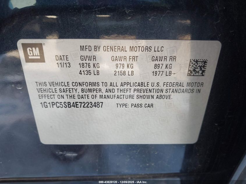 2014 CHEVROLET CRUZE 2014 року Бензин, 1.4, Передний привод, vin - 1G1PC5SB4E7223487 из США