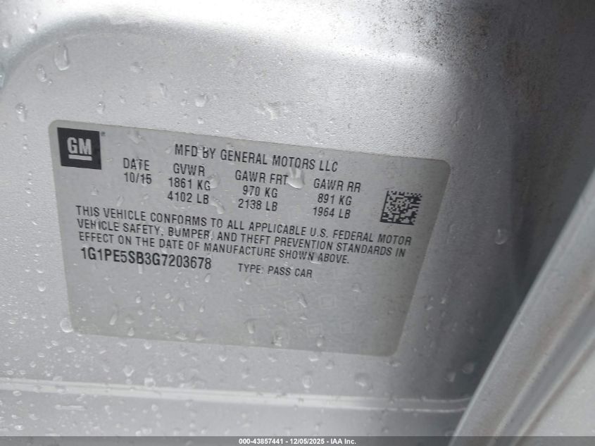 2016 CHEVROLET CRUZE 2016 року Бензин, 1.4, Передний привод, vin - 1G1PE5SB3G7203678 из США
