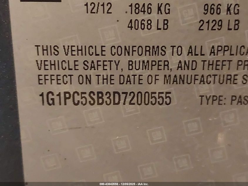 Цвет СерыйЦилиндры 4Привод Передний приводVIN 1G1PC5SB3D7200555Состояние Заводится и едет (проверено)Повреждения Передняя или задняя AutoRIA