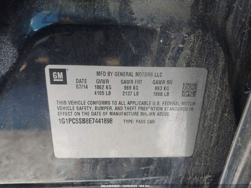 2014 CHEVROLET CRUZE 2014 року Бензин, 1.4, Передний привод, vin - 1G1PC5SB8E7441898 из США