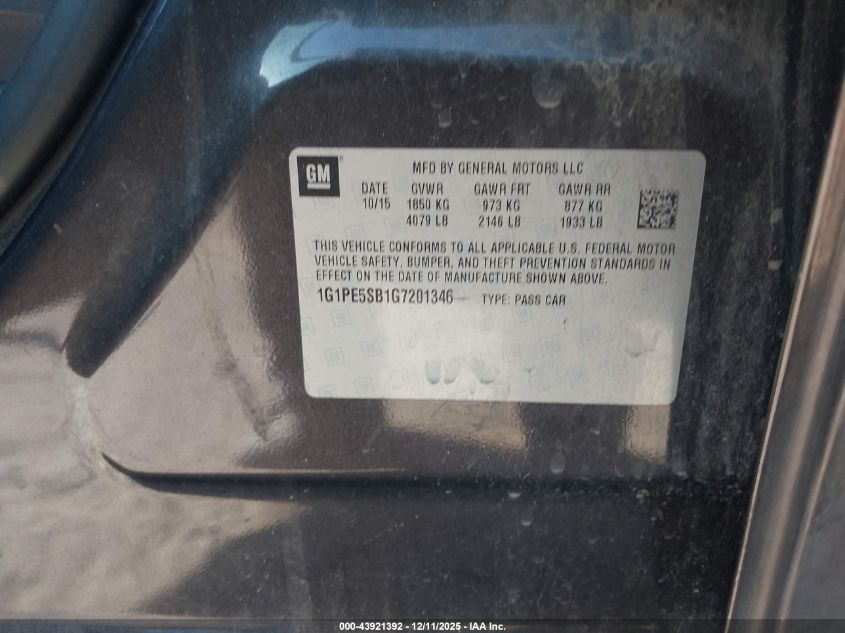 2016 CHEVROLET CRUZE 2016 року Бензин, 1.4, Передний привод, vin - 1G1PE5SB1G7201346 из США