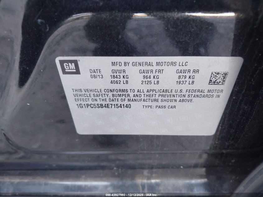 Цвет ЧерныйЦилиндры 4Привод Передний приводVIN 1G1PC5SB4E7154140Состояние СтационарноПовреждения Задняя левая AutoRIA