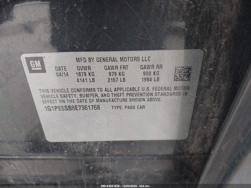 2014 CHEVROLET CRUZE 2014 року Бензин, 1.4, Передний привод, vin - 1G1PE5SB8E7361768 из США