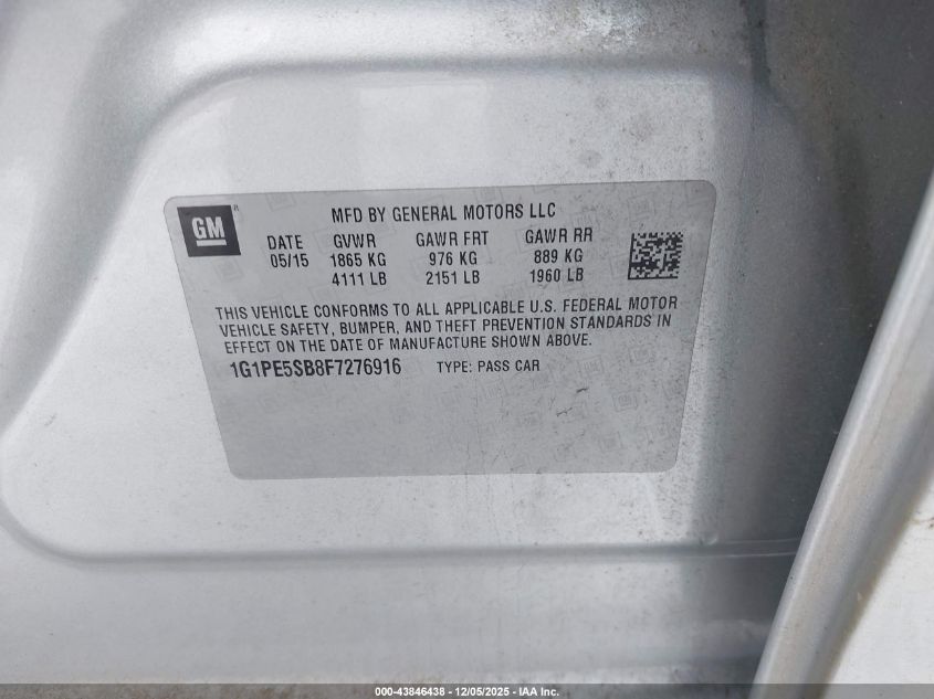2015 CHEVROLET CRUZE 2015 року Бензин, 1.4, Передний привод, vin - 1G1PE5SB8F7276916 из США