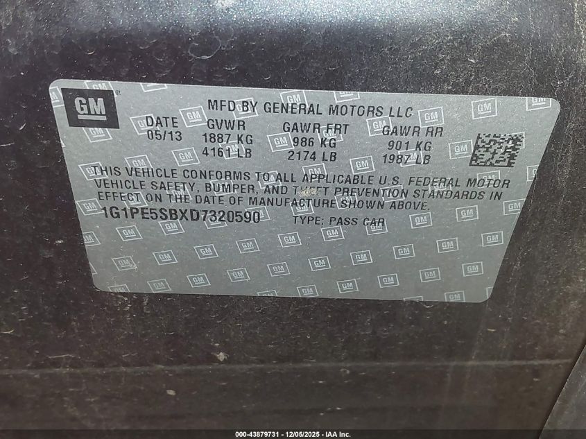 2013 CHEVROLET CRUZE 2013 року Бензин, 1.4, Передний привод, vin - 1G1PE5SBXD7320590 из США