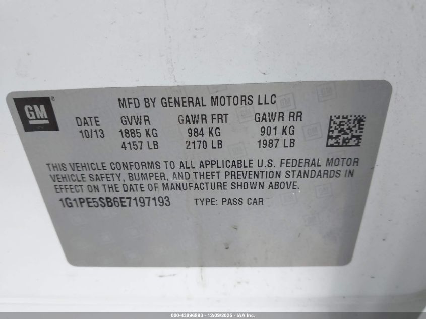 2014 CHEVROLET CRUZE 2014 року Бензин, 1.4, Передний привод, vin - 1G1PE5SB6E7197193 из США