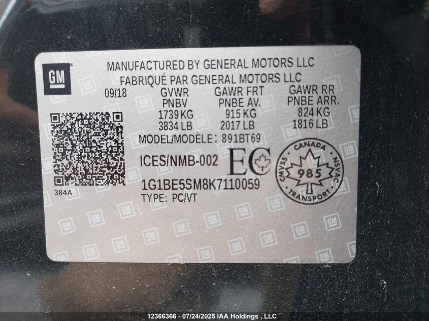 Цвет ЧерныйЦилиндры 4Привод Передний приводVIN 1G1BE5SM8K7110059Состояние СтационарноПовреждения ПередняяДата аукциона 2025-12-18 AutoRIA