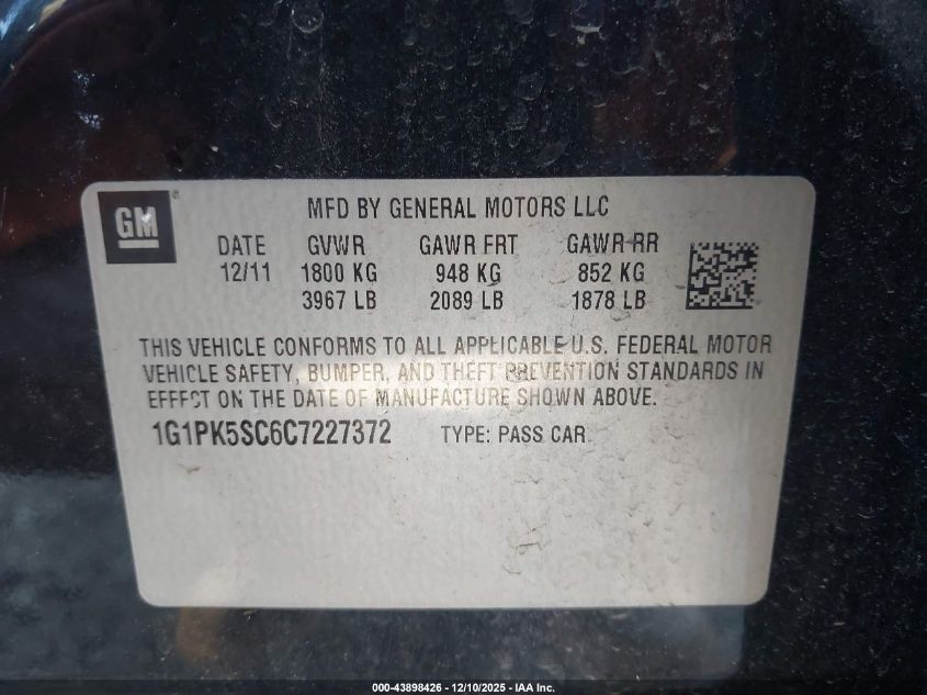 2012 CHEVROLET CRUZE 2012 року Бензин, 1.4, Передний привод, vin - 1G1PK5SC6C7227372 из США