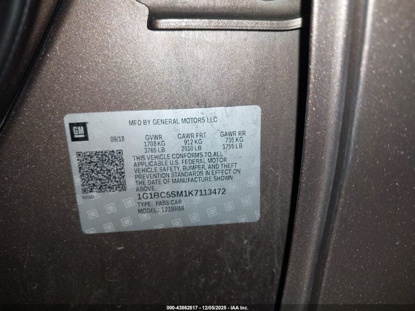 2019 CHEVROLET CRUZE 2019 року Бензин, 1.4, Передний привод, vin - 1G1BC5SM1K7113472 из США