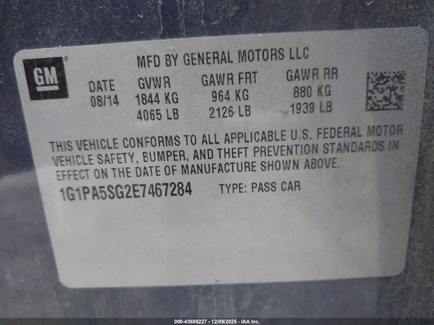 Цвет СинийЦилиндры 4Привод Передний приводVIN 1G1PA5SG2E7467284Состояние СтационарноПовреждения Механические повреждения AutoRIA