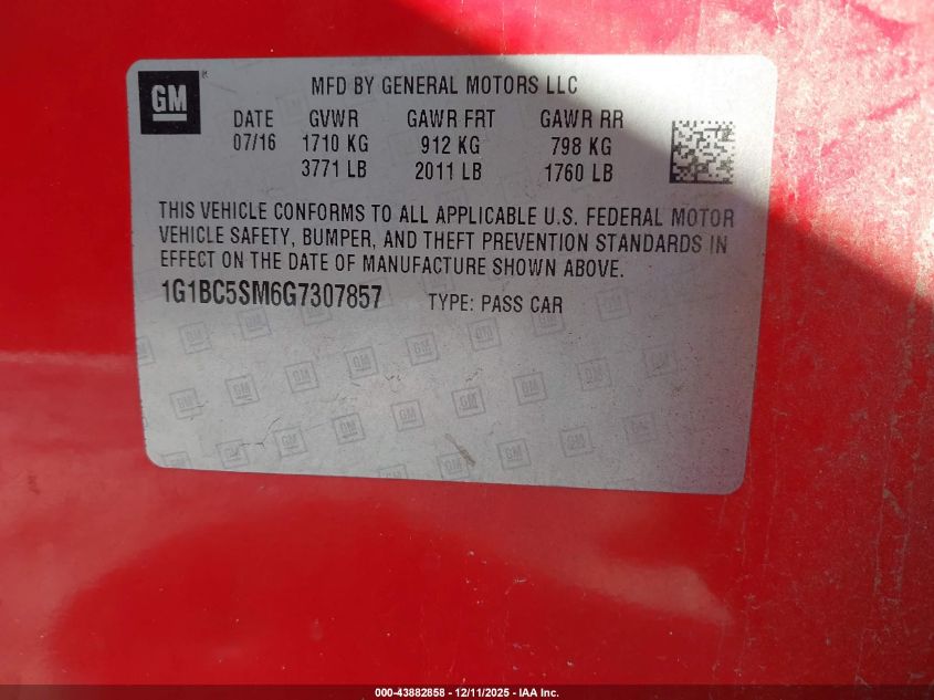 2016 CHEVROLET CRUZE 2016 року Бензин, 1.4, Передний привод, vin - 1G1BC5SM6G7307857 из США