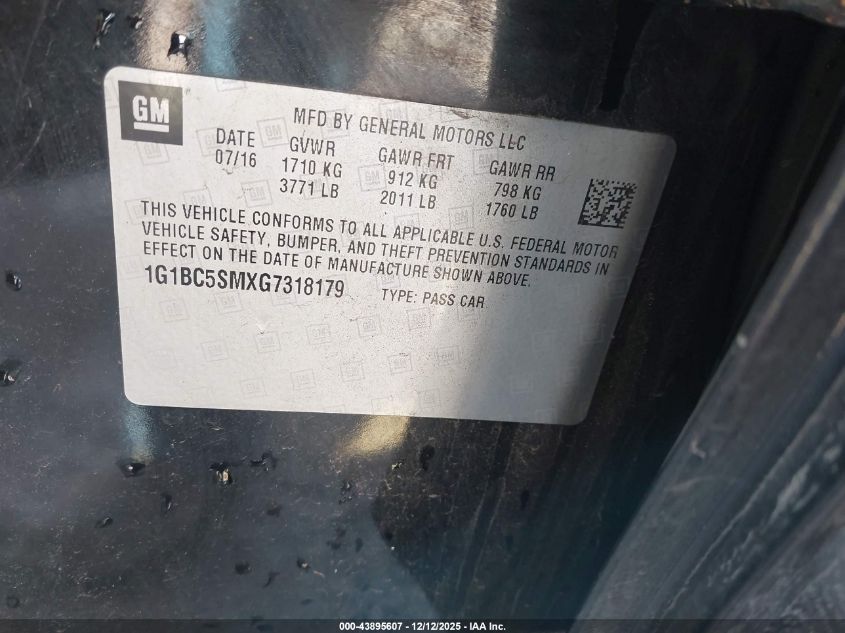2016 CHEVROLET CRUZE 2016 року Бензин, 1.4, Передний привод, vin - 1G1BC5SMXG7318179 из США