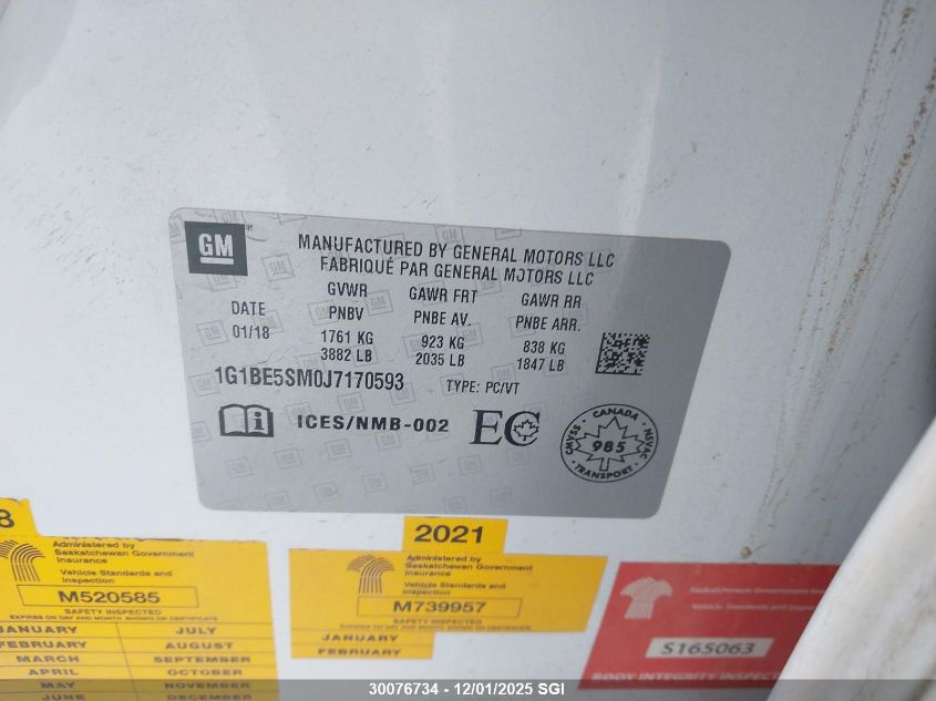2018 CHEVROLET CRUZE 2018 року Бензин, , Передний привод, vin - 1G1BE5SM0J7170593 из США