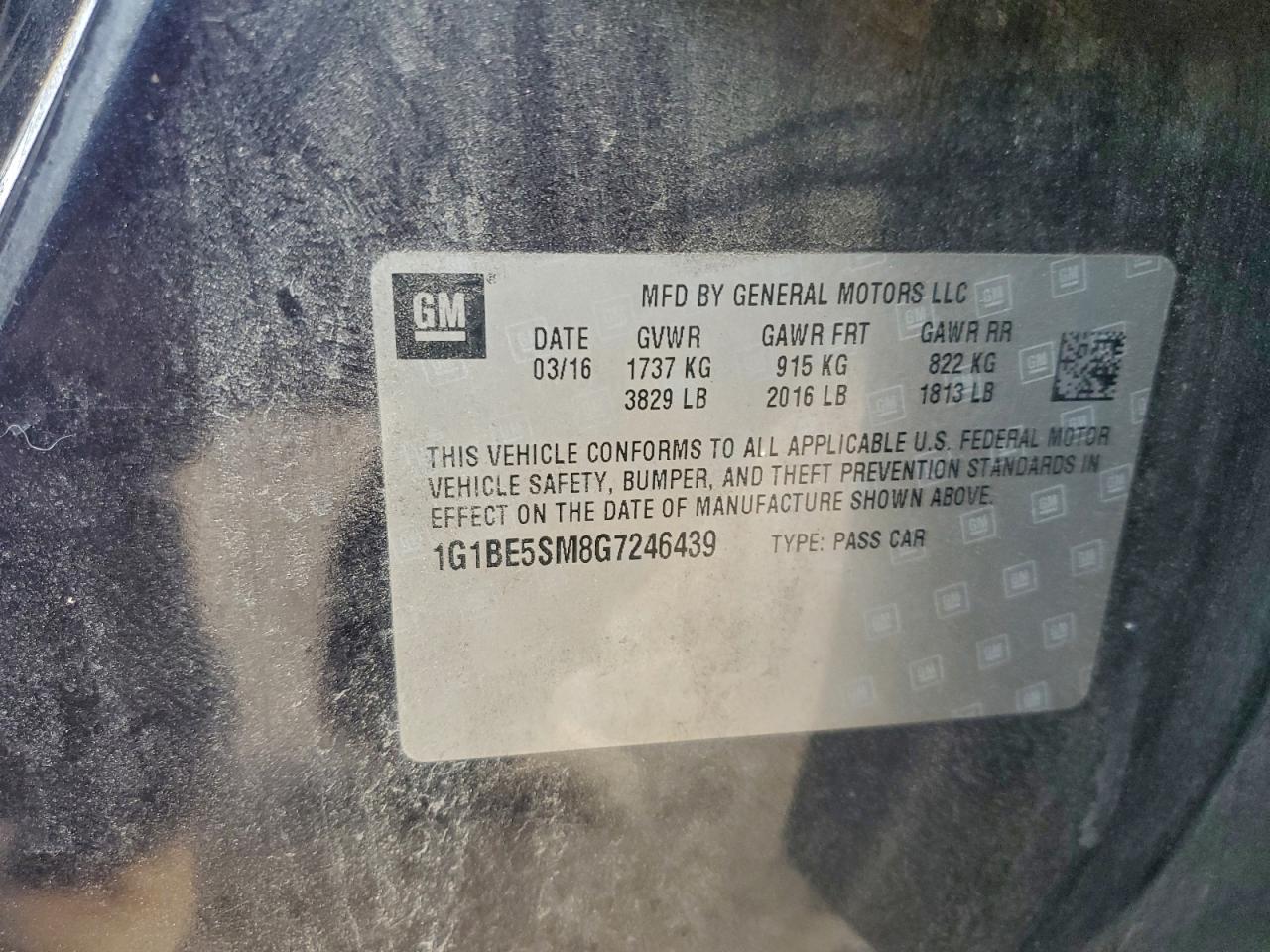 Цвет СинийЦилиндры 4VIN 1G1BE5SM8G7246439Состояние ЗаводитсяПовреждения Передняя или задняя AutoRIA