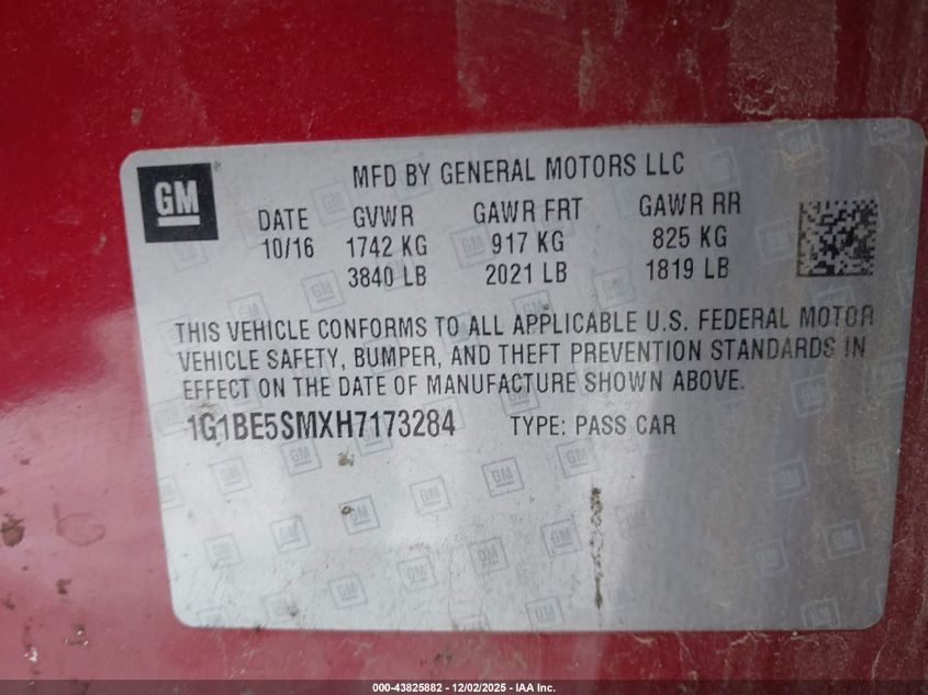 2017 CHEVROLET CRUZE 2017 року Бензин, 1.4, Передний привод, vin - 1G1BE5SMXH7173284 из США