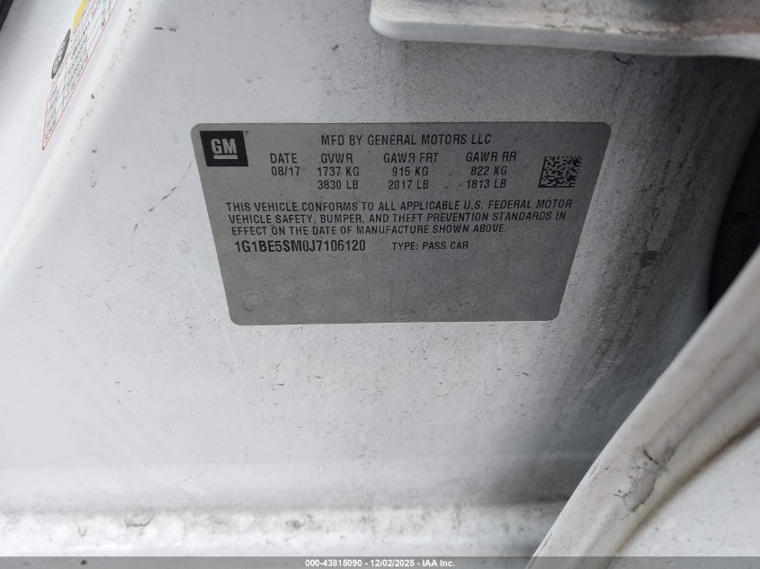 2018 CHEVROLET CRUZE 2018 року Бензин, 1.4, Передний привод, vin - 1G1BE5SM0J7106120 из США