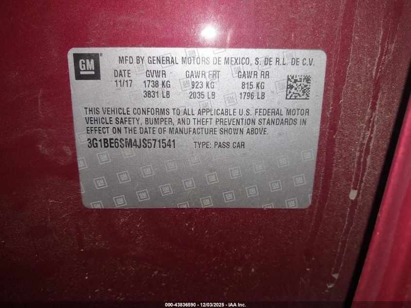 Цвет БургундияЦилиндры 4Привод Передний приводVIN 3G1BE6SM4JS571541Состояние СтационарноПовреждения Передняя или задняяДата аукциона 2025-12-09 AutoRIA