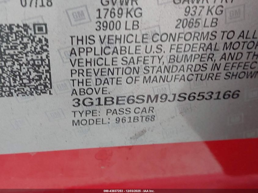 2018 CHEVROLET CRUZE 2018 року Бензин, 1.4, Передний привод, vin - 3G1BE6SM9JS653166 из США
