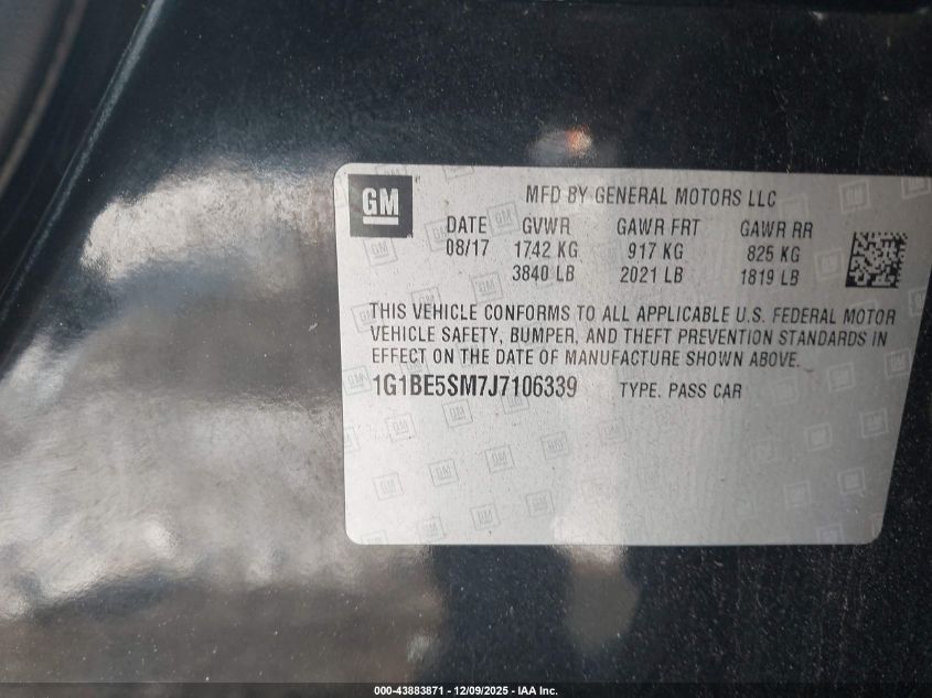 2018 CHEVROLET CRUZE 2018 року Бензин, 1.4, Передний привод, vin - 1G1BE5SM7J7106339 из США