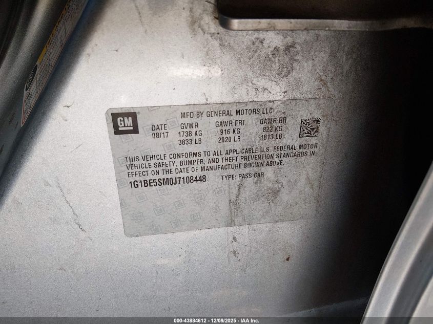 2018 CHEVROLET CRUZE 2018 року Бензин, 1.4, Передний привод, vin - 1G1BE5SM0J7108448 из США