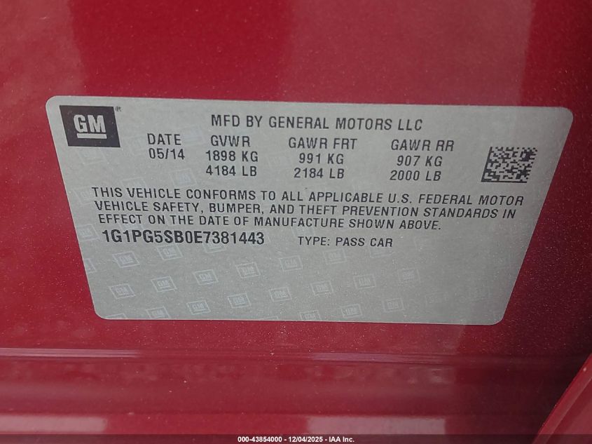 2014 CHEVROLET CRUZE 2014 року Бензин, 1.4, Передний привод, vin - 1G1PG5SB0E7381443 из США
