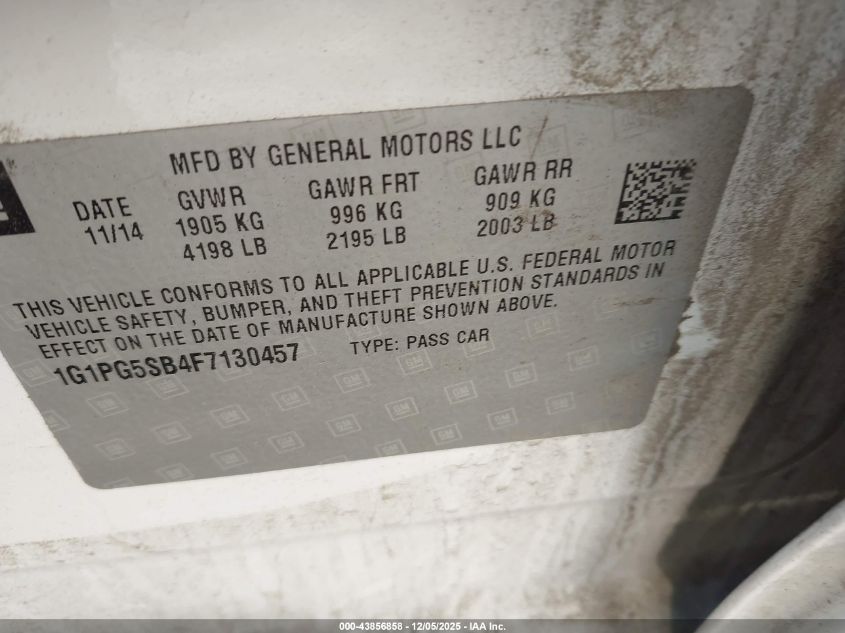 Цвет БелыйЦилиндры 4Привод Передний приводVIN 1G1PG5SB4F7130457Состояние Заводится и едет (проверено)Повреждения Передняя или задняя AutoRIA