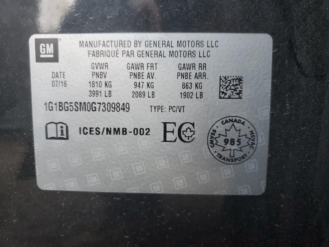 2016 CHEVROLET CRUZE 2016 року Бензин, 1.4, , vin - 1G1BG5SM0G7309849 из США