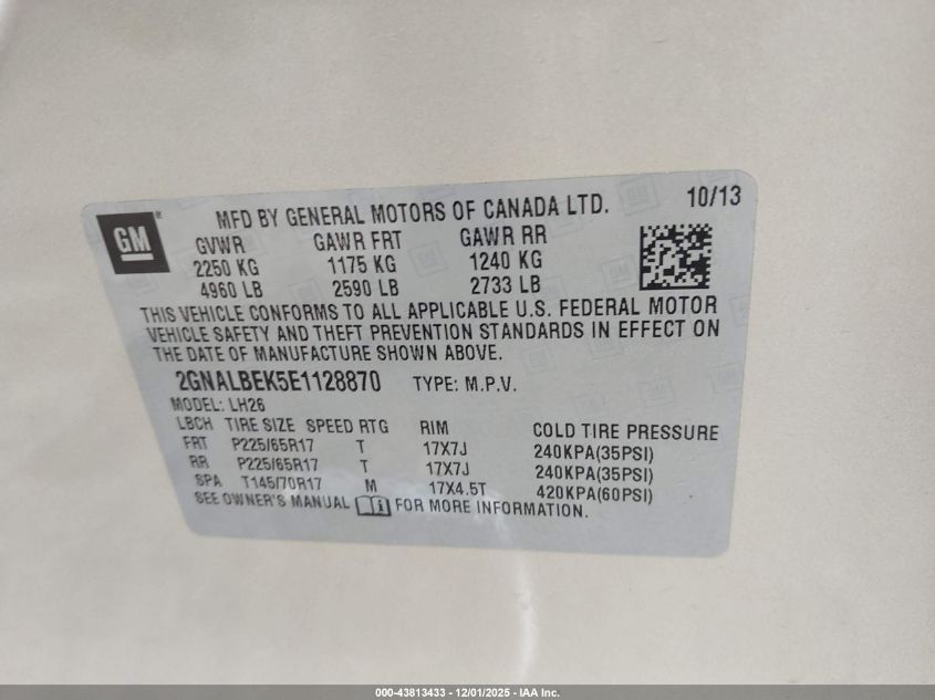 2014 CHEVROLET EQUINOX 2014 року Бензин, 2.4, Передний привод, vin - 2GNALBEK5E1128870 из США