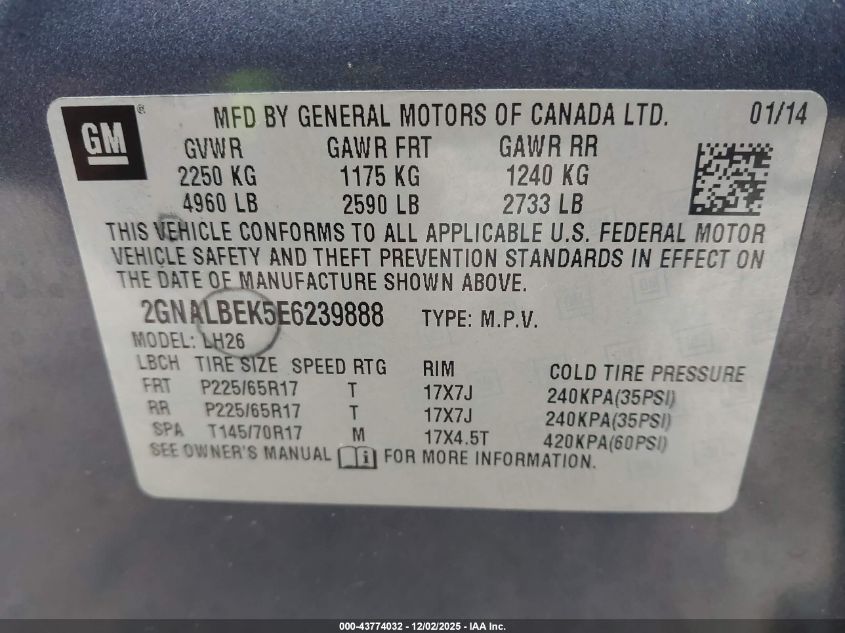 2014 CHEVROLET EQUINOX 2014 року Бензин, 2.4, Передний привод, vin - 2GNALBEK5E6239888 из США